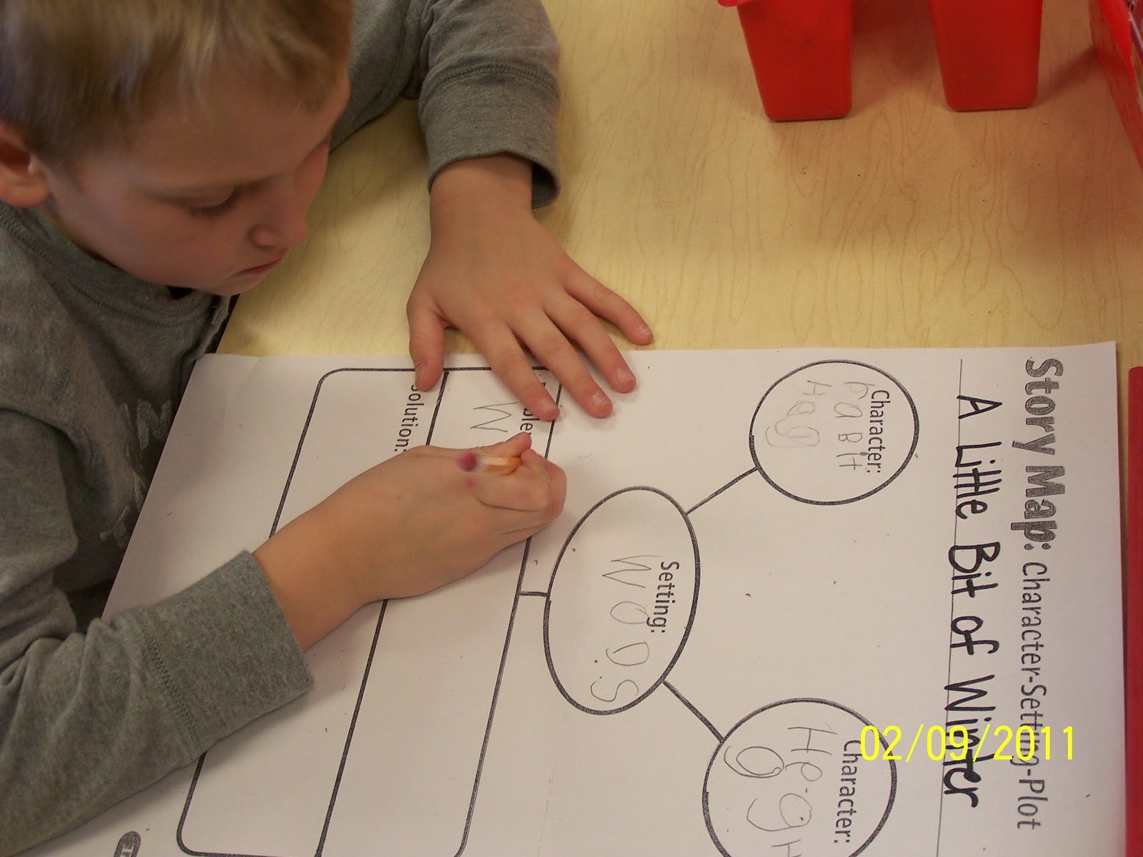 At the end of the month of January and the beginning of February the students in my class started Book Club Plus. We focused on the book, A Little Bit of Winter. In the story, Rabbit is sad because Hedgehog is going to hibernate and he didn't want to miss him. Hedgehog asks Rabbit for a favor and writes a note on a tree so Rabbit won't forget, "Dear Rabbit, Please save me a little bit of winter for when I wake up. Love, Hedgehog" Hedgehog had never seen winter before and wanted to know what it was like. When Hedgehog went to sleep Rabbit noticed the message left on the tree and decided to save a snowball for Hedgehog. He wrapped the snowball in leaves so it wouldn't melt and stored it in his burrow. When spring finally arrived, Rabbit shared his snowball with Hedgehog and the two friends celebrated the change in season together.
